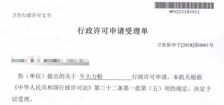 2018年1月17日,企業(yè)委托我司申報(bào)的“牛大力粉”正式獲得國家衛(wèi)計(jì)委受理,受理編號為:衛(wèi)食新申字(2018)第0001號,這也是2018年第一個(gè)新食品原料獲得受理,由于國家衛(wèi)計(jì)委公共查詢系統(tǒng)更新較慢,目前截至發(fā)稿還未公示,相信很快就會在國家衛(wèi)計(jì)委網(wǎng)站上公示。