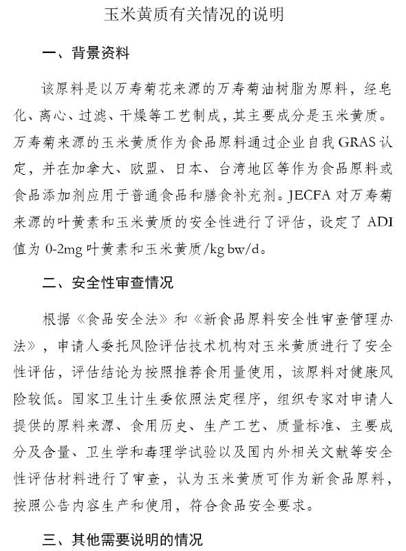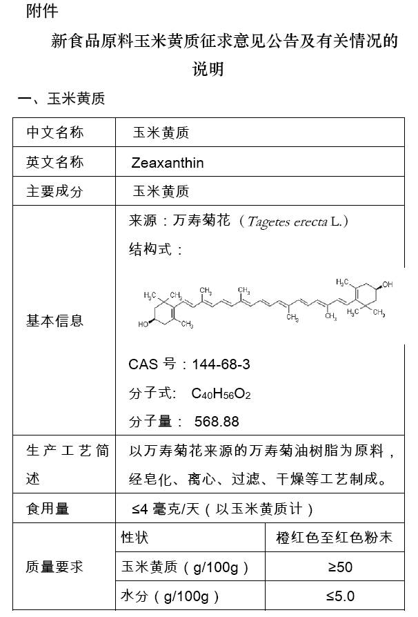 新食品原料玉米黃質(zhì)公開征求意見