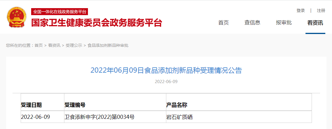 2022年06月09日食品添加劑新品種受理情況公告