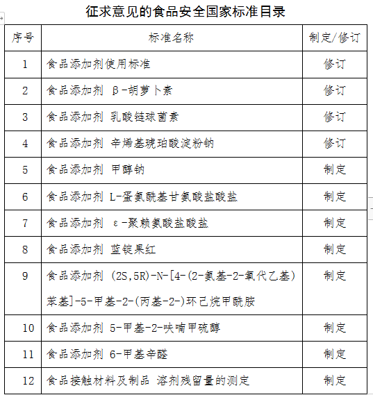 附件:征求意見的食品安全國家標(biāo)準(zhǔn)目錄