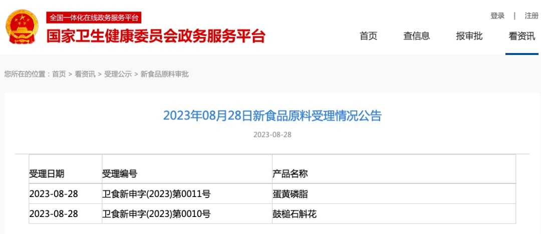 新食品原料 | 國家衛(wèi)健委發(fā)布蛋黃磷脂、鼓槌石斛花受理公告