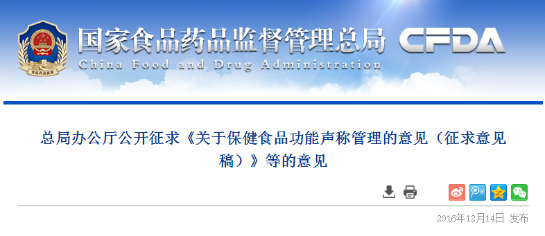 總局辦公廳公開征求《關(guān)于保健食品功能聲稱管理的意見(征求意見稿)》等的意見