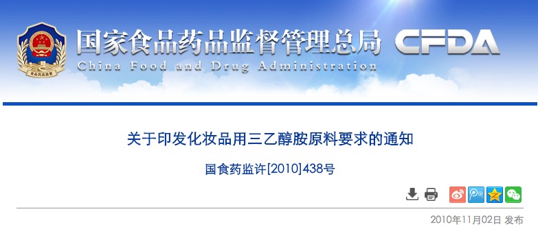 關(guān)于印發(fā)化妝品用三乙醇胺原料要求的通知