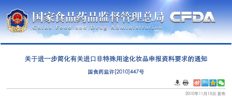 關(guān)于進一步簡化有關(guān)進口非特殊用途化妝品申報資料要求的通知
