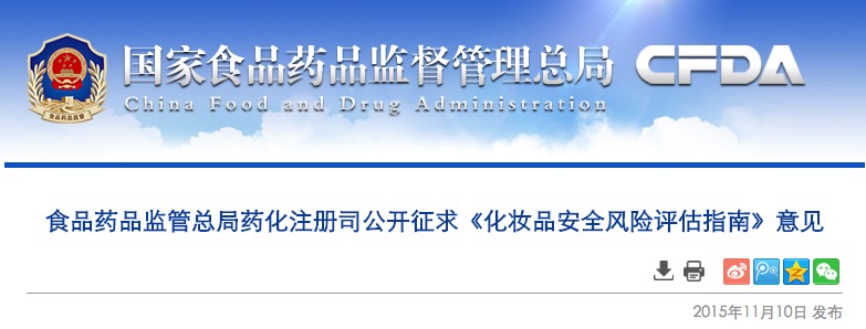 食品藥品監(jiān)管總局藥化注冊司公開征求《化妝品安全風險評估指南》意見