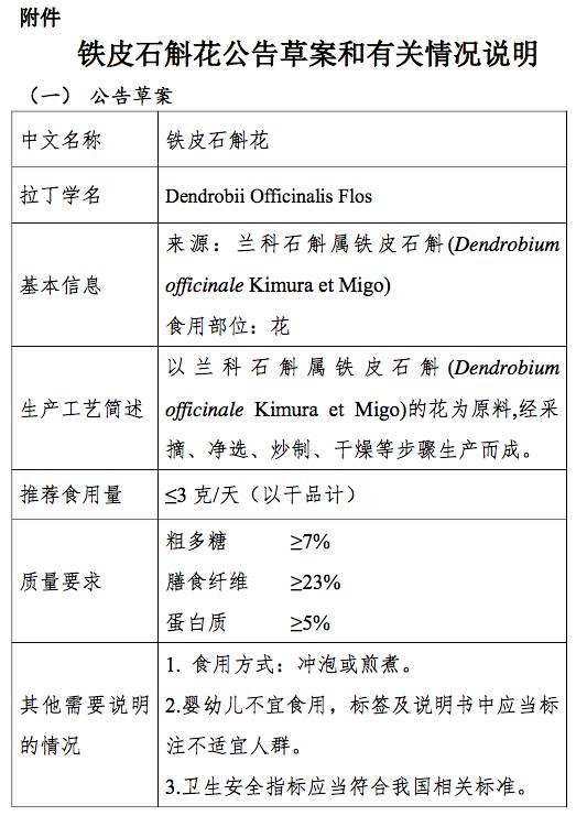 鐵皮石斛花等3種新食品原料公開征求意見