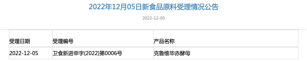 國(guó)家衛(wèi)健委發(fā)布克魯維畢赤酵母新食品原料受理公告